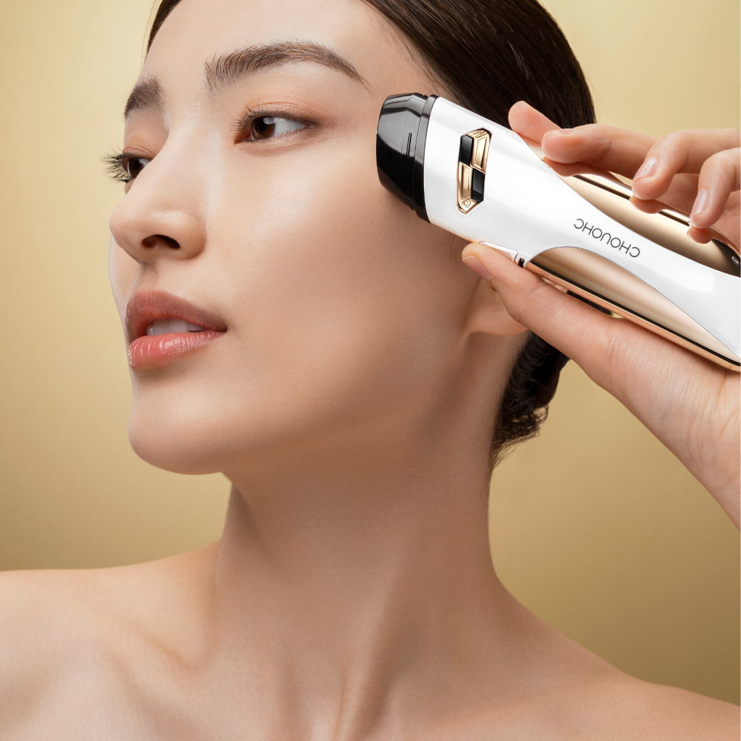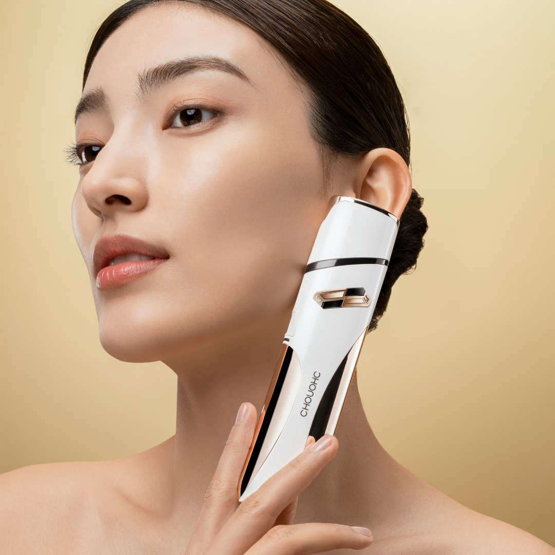 • EMS, RF heat, and red LED rejuvenate skin at home.